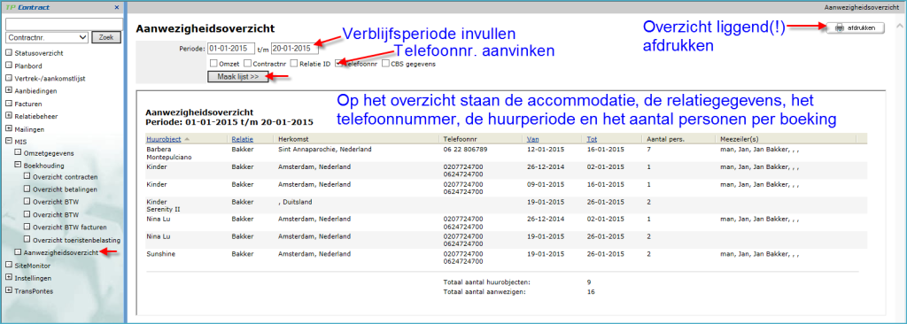Een aanwezigheidsoverzicht is een zeer handig hulpmiddel. Daarnaast kan er in het geval van calamiteiten gerichter actie worden ondernomen door de hulpdiensten. Zorg dus altijd voor een aanwezigheidsoverzicht op papier! Ga naar MIS – aanwezigheidsoverzicht.
