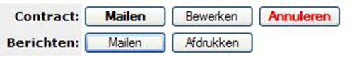 - Bekijken, Mailen of Printen. Als u bij het maken van het contract hebt aangegeven dat het contract meteen gemaild of geprint moet worden verschijnt in het contractformulier achter Contract de button Bekijken (zoals hierboven); u kunt het contract dan nog eens inzien. Hebt u aangegeven dat het contract later gemaild of geprint moet worden, dan verschijnt de button Mailen of de button Afdrukken (zie hieronder): u moet de handeling immers nog verrichten? In het Statusoverzicht krijgt het contract de juiste status.