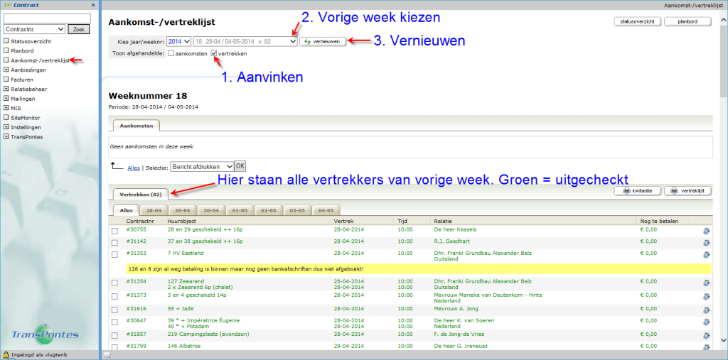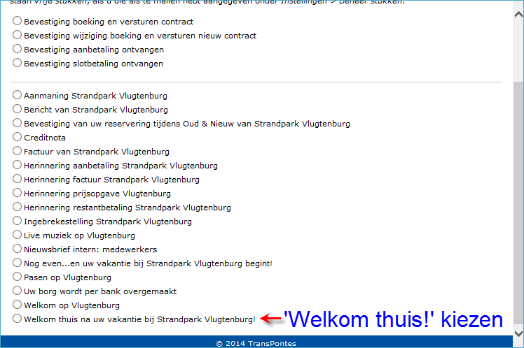 Iedere week stuur je de gasten die afgelopen week zijn vertrokken een ‘Welkom thuis’-bericht. Dit doe je aan de hand van de vertreklijst van afgelopen week.