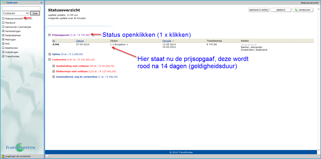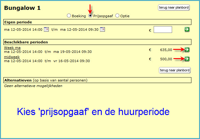 Als een prijsopgaaf rood wordt, open deze dan en bel of mail de gast na. Vraag of de gast al iets gevonden heeft en….
