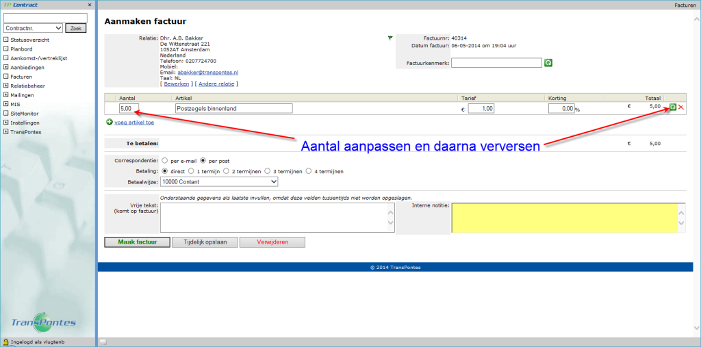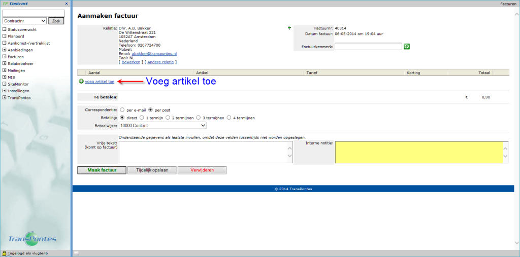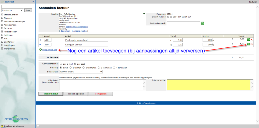 Er is nu een blanco factuur aangemaakt waaraan u artikelen kunt toevoegen.
